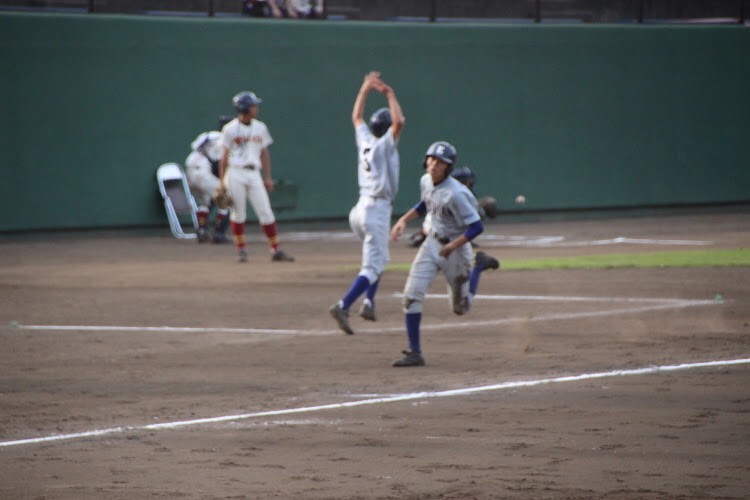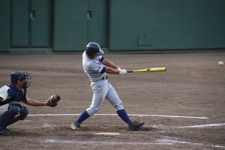 穎明館の先発は2回戦同様エースの深松。序盤に、内野手と外野手のミスも絡み3点を失いました。一方、攻撃では再三チャンスを作るものの、あと一本が出ず無得点のまま序盤を終えました。見せ場は5回に訪れました。1死1・2塁の場面で4番石原が高めの変化球をレフト線に運び、意地の1点を返しました。しかし、反撃もこれまでで、7回コールドで敗退となりました。