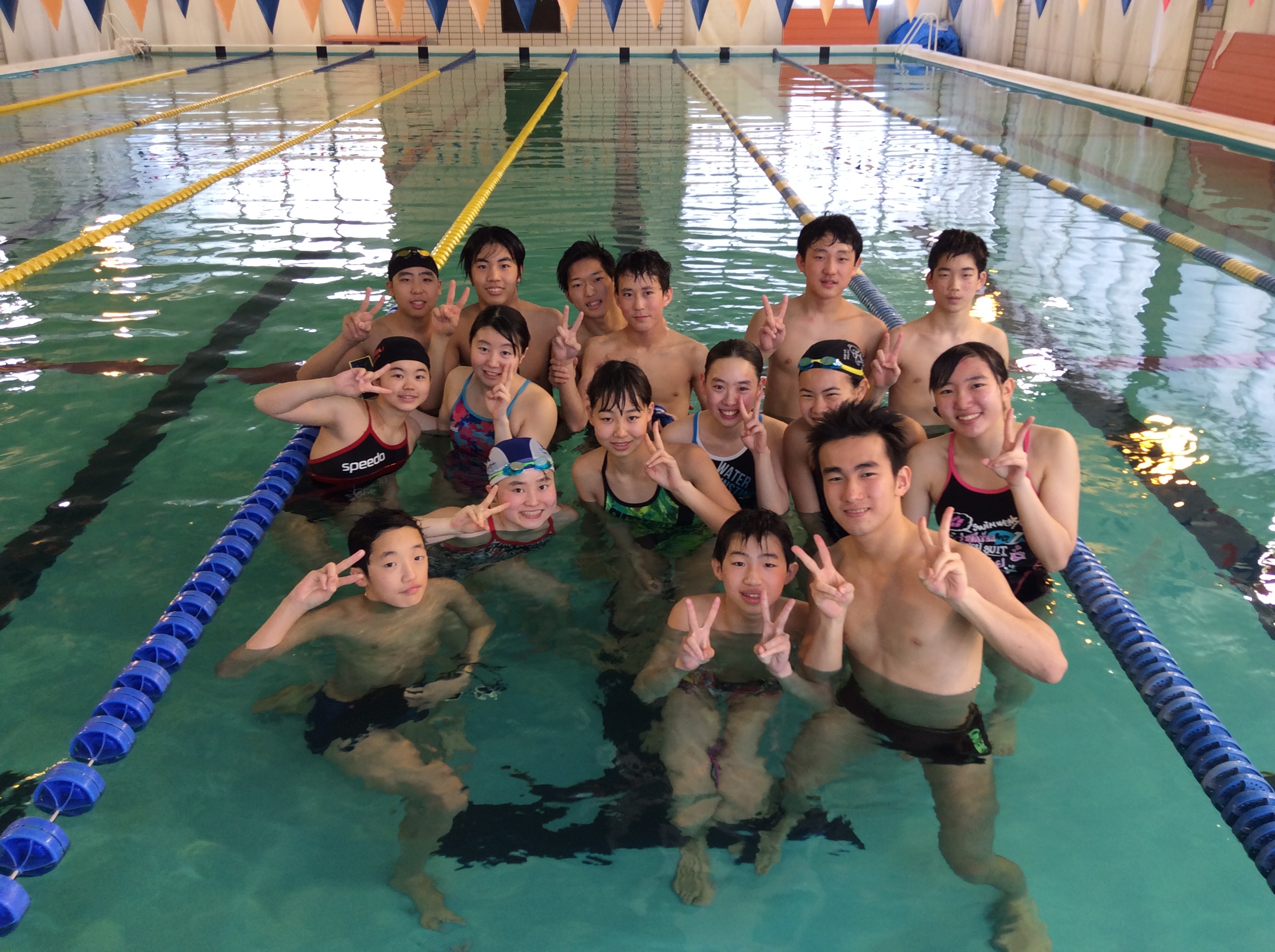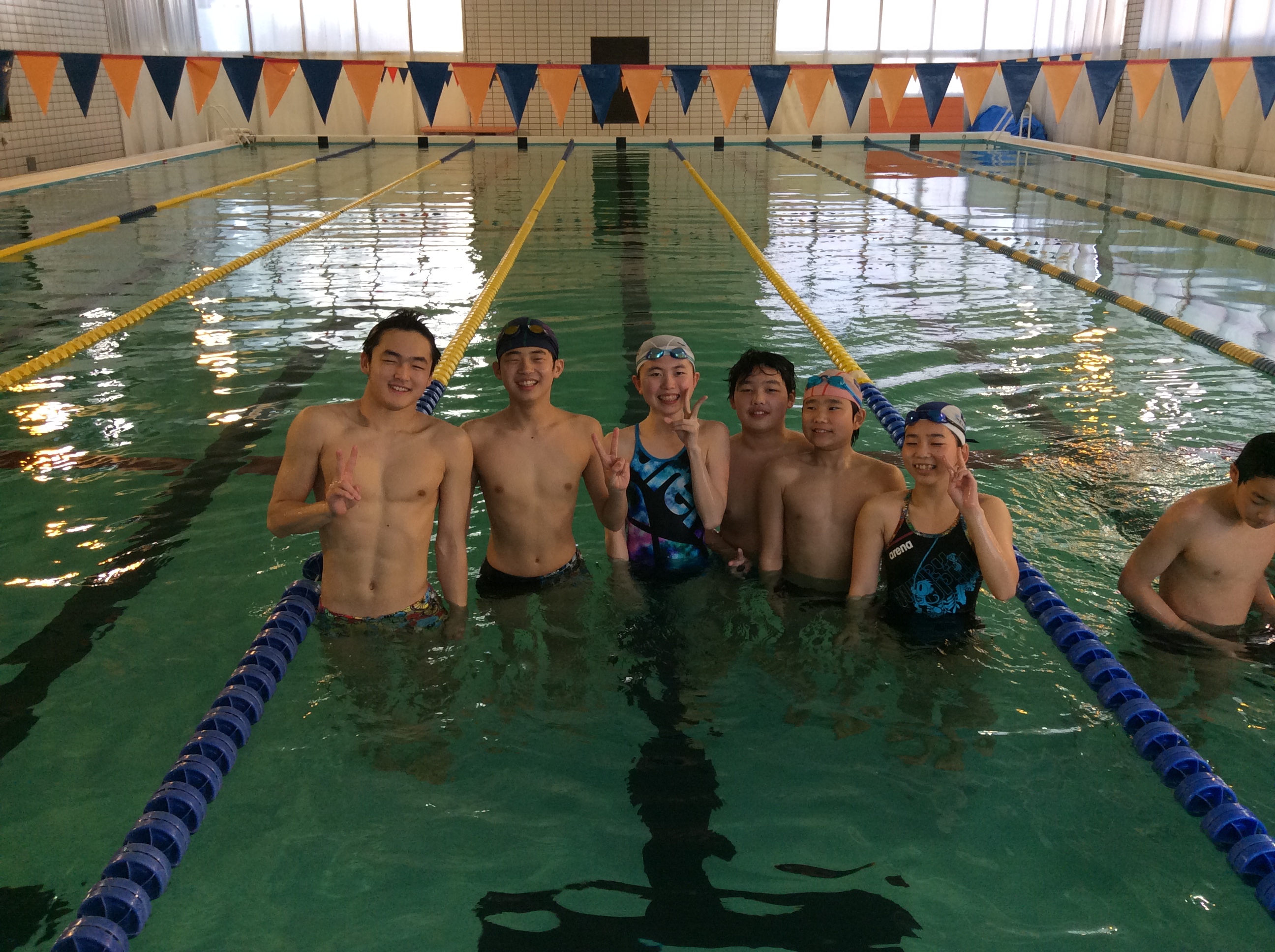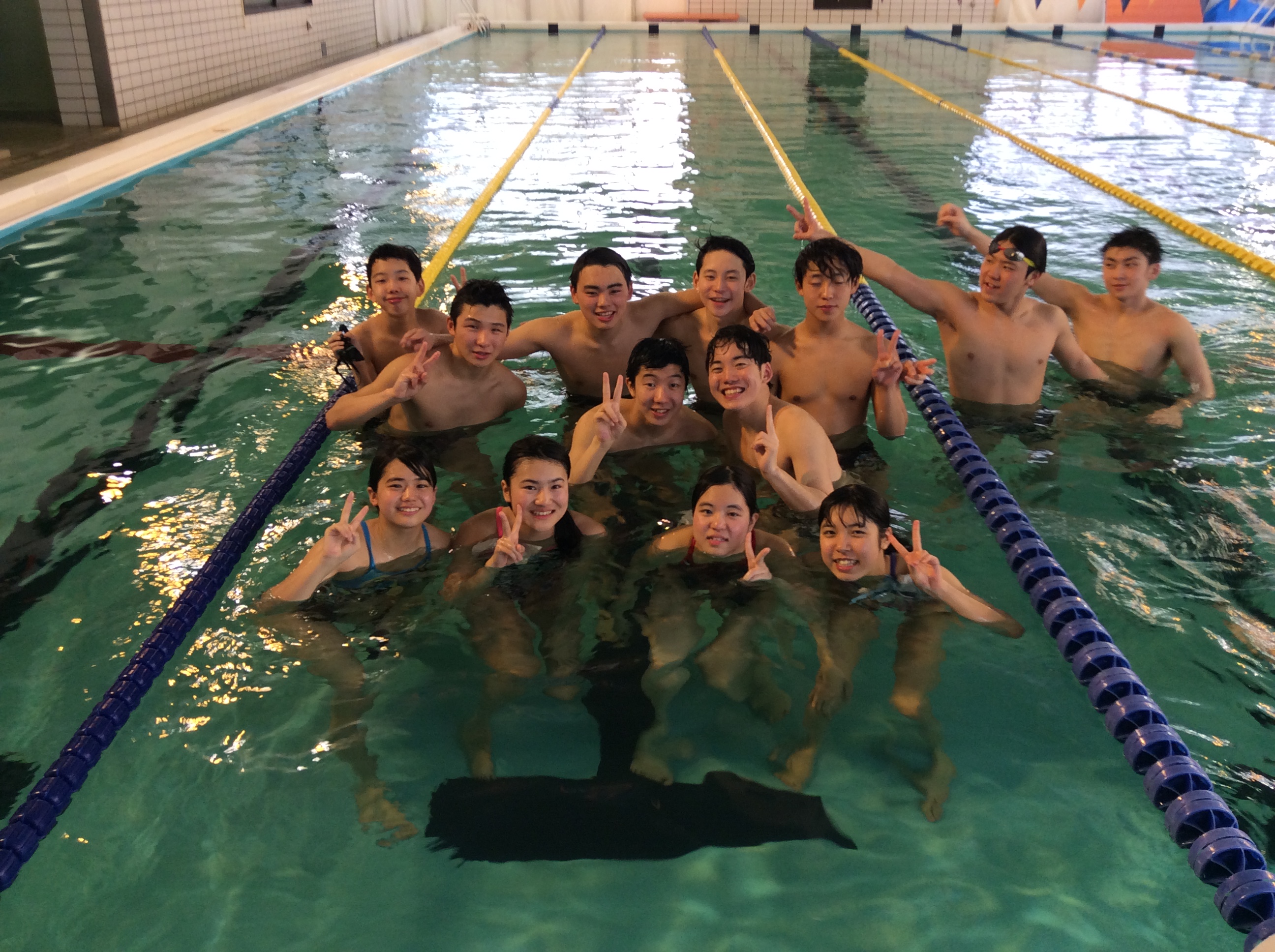 泳ぐときは一人ですが、練習のときは仲間がいます。