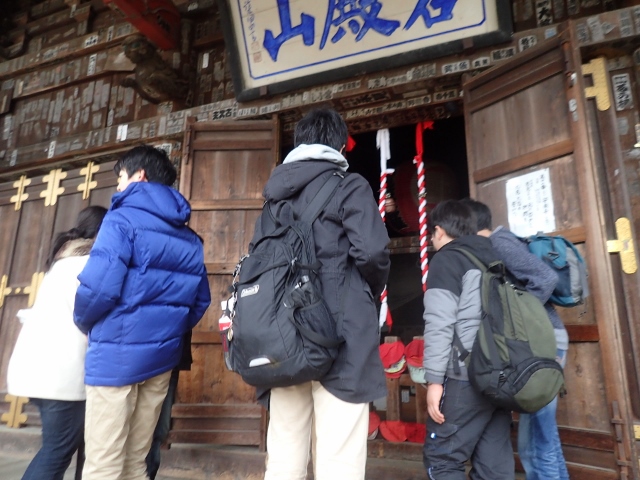 近くにある吉見観音で休憩をしました。勉強ができるようにとお祈りをして、名物の団子を食べました。