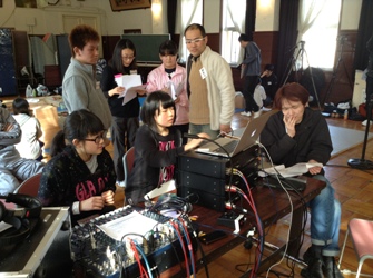 このワークショップは関東を中心に15校ほどの学校が集まり、演技・音響・照明・大道具(舞台美術)の班に分かれ、プロの講師に基本事項をまなびつつ、実際に機材を扱いながら最終日に1つの作品をつくるという大変贅沢なワークショップです。